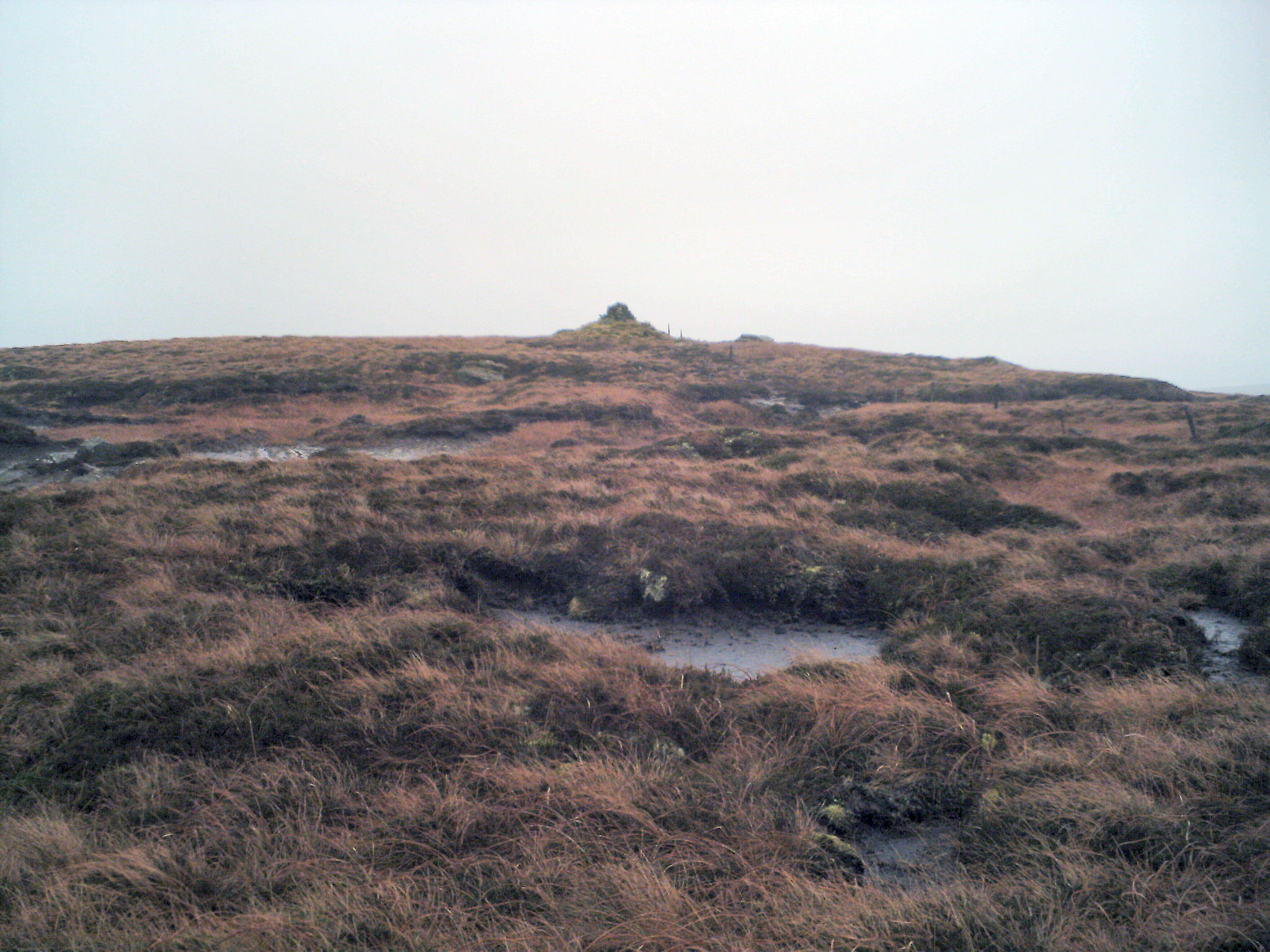 The cairn at the summit of Peel Fell. Note the number of small ponds.