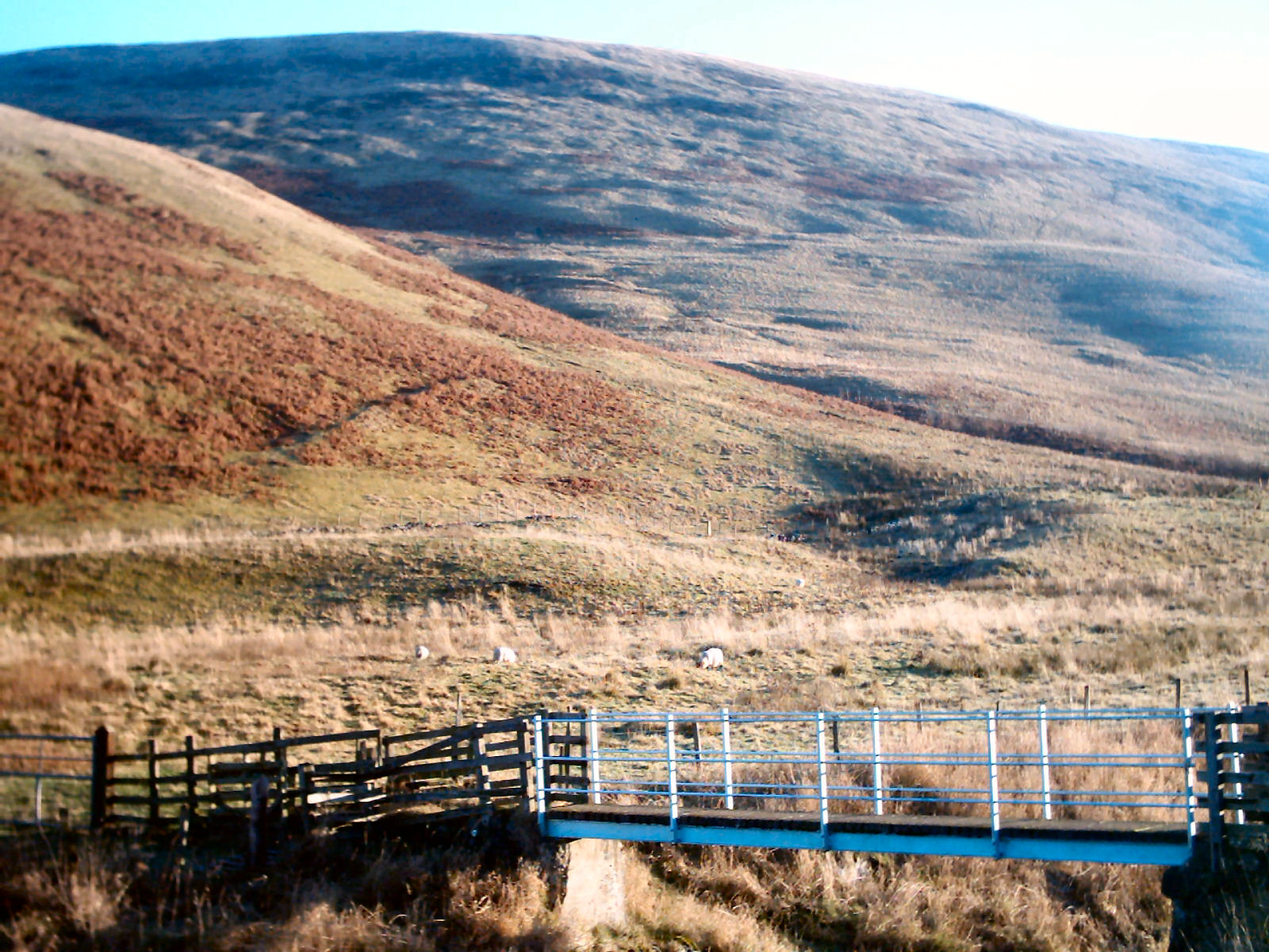 then the river over the bridge at NT 8667 1042. Head straight across the